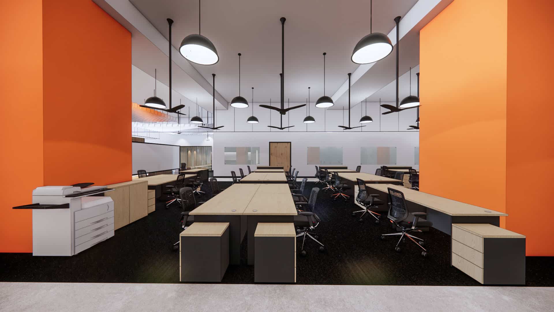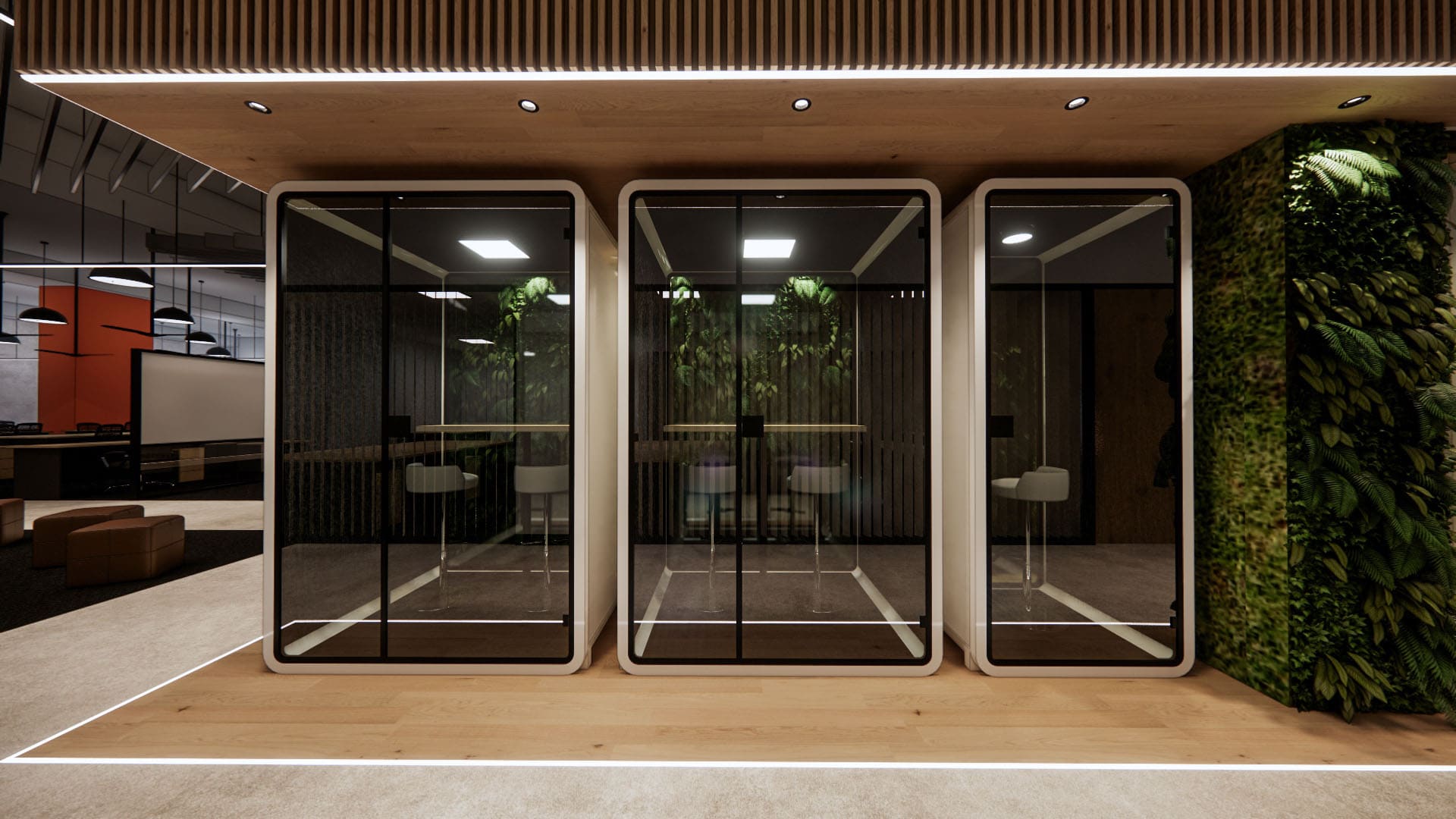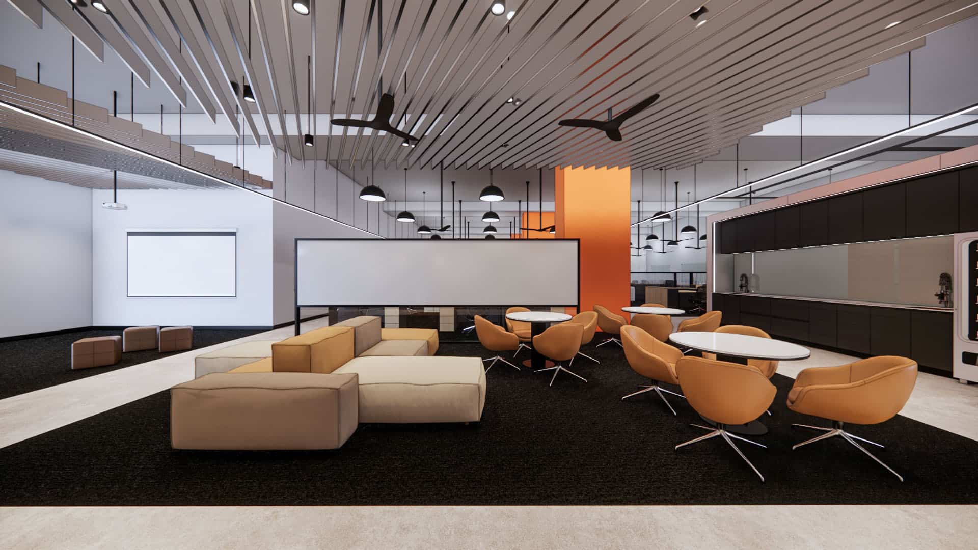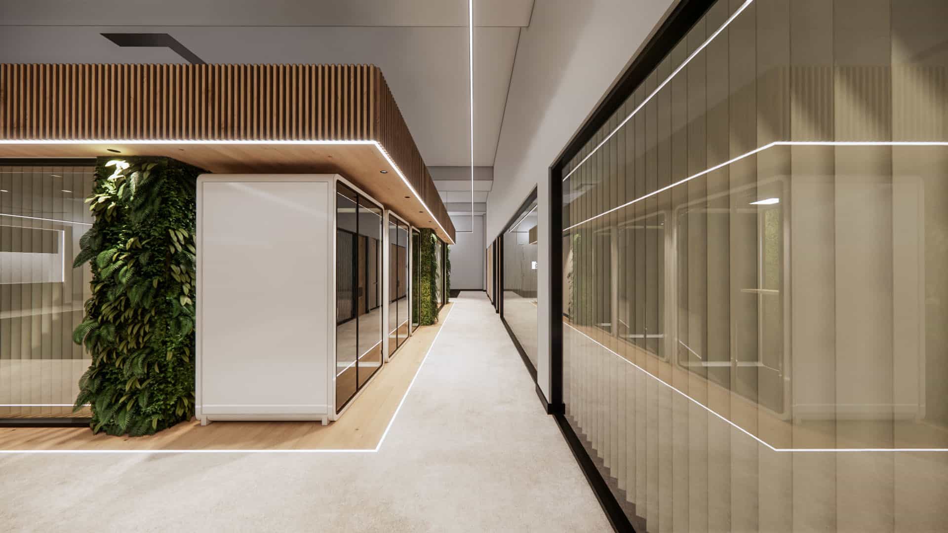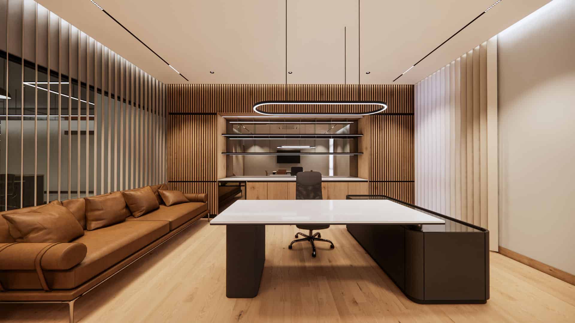 This EV charging service office integrates sleek black finishes, cool steel feature walls, and advanced lighting with a central green spine and warm timber accents. The design balances innovation and nature, reinforcing the company’s commitment to sustainability, efficiency, and a progressive workplace culture.
